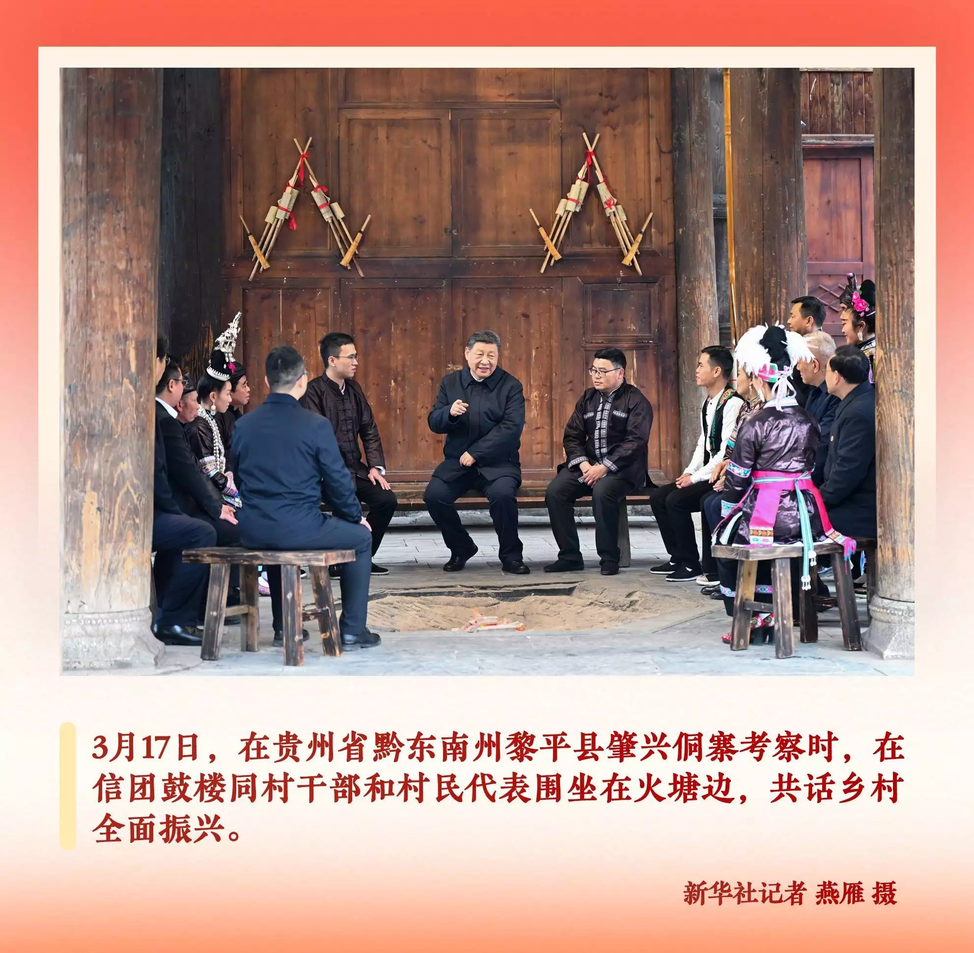 “大家都说说,咱们聊聊家常。”贵州黎平县肇兴侗寨,鼓楼里,一方火塘暖意融融,习近平总书记同村干部和村民代表围坐共话,“把乡村振兴做得更好”,谆谆嘱托温暖人心、汇聚信心。
