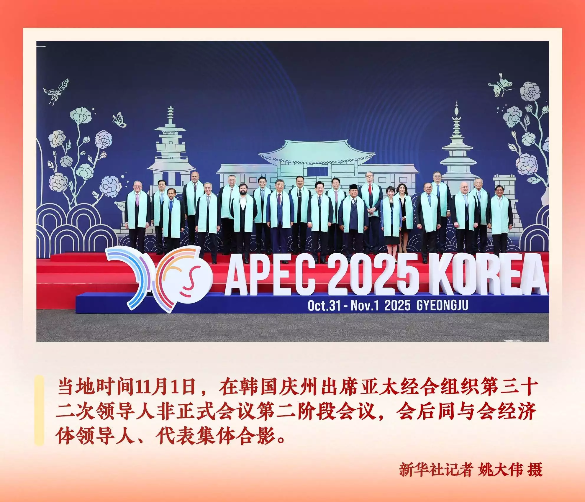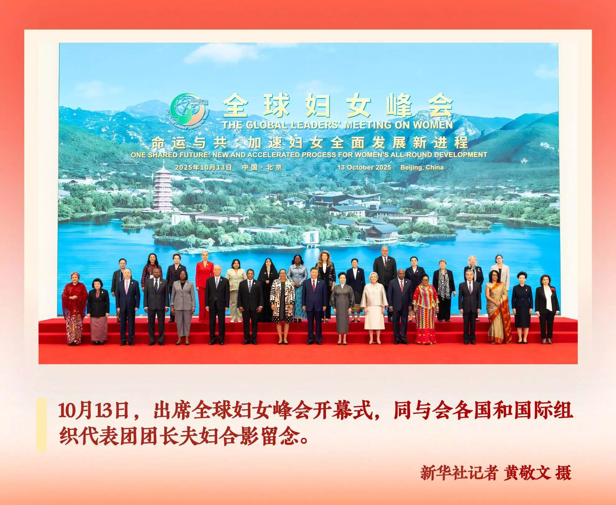 主持上海合作组织天津峰会,同与会嘉宾拍“全家福”,旗阵恢弘,宛如文明辉映;出席全球妇女峰会开幕式,同与会各国和国际组织代表团团长夫妇并肩而立,身后的巨幅背景板上,显现出30年前北京世妇会非政府组织妇女论坛举办地怀柔的湖光塔影;亚太经合组织第三十二次领导人非正式会议期间,同与会经济体领导人、代表肩披围巾、合影留念……