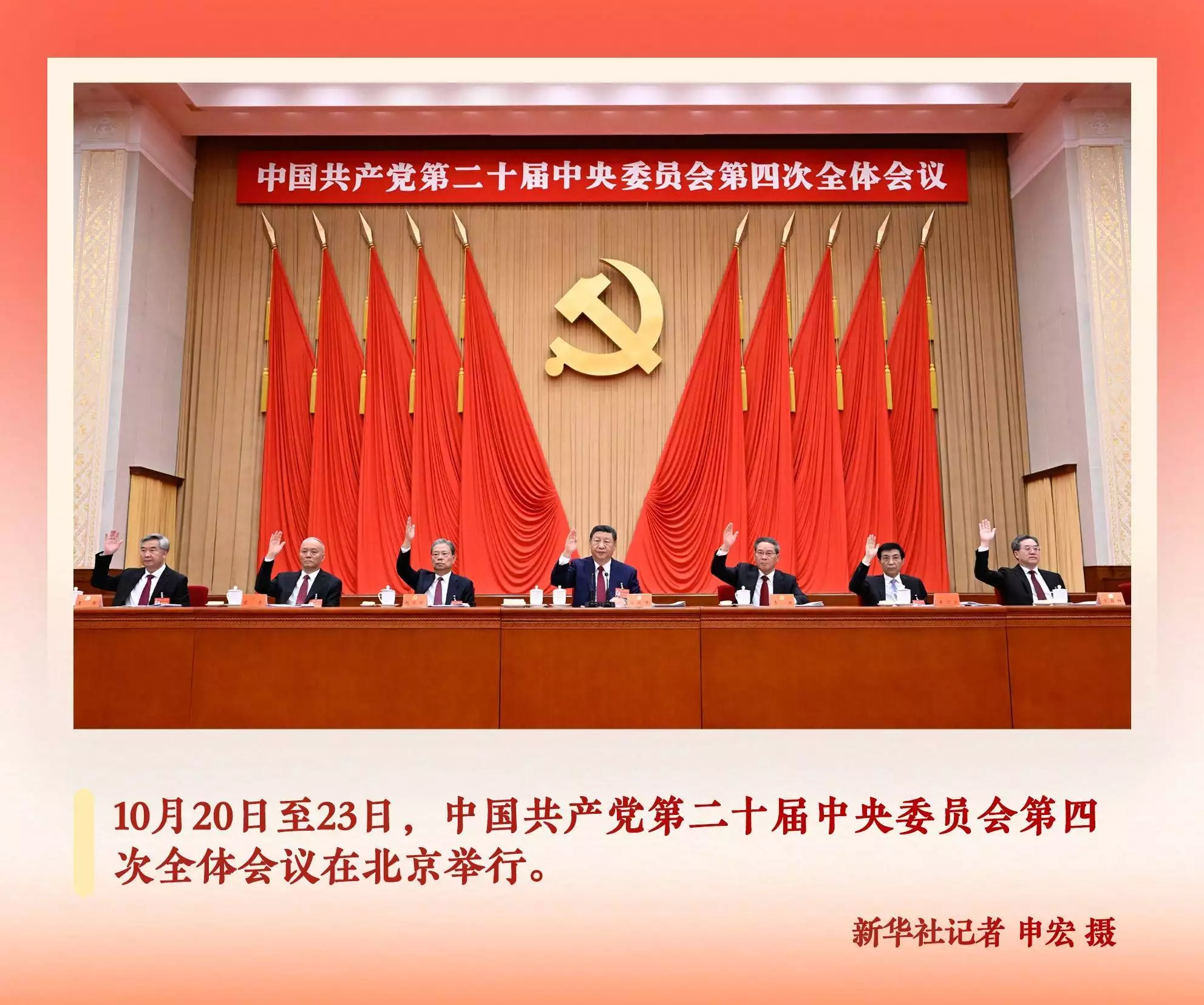 雄壮的《国际歌》声中,全会胜利闭幕,深沉的旋律响彻人民大会堂,金色的中国共产党党徽熠熠生辉,如初心闪耀。