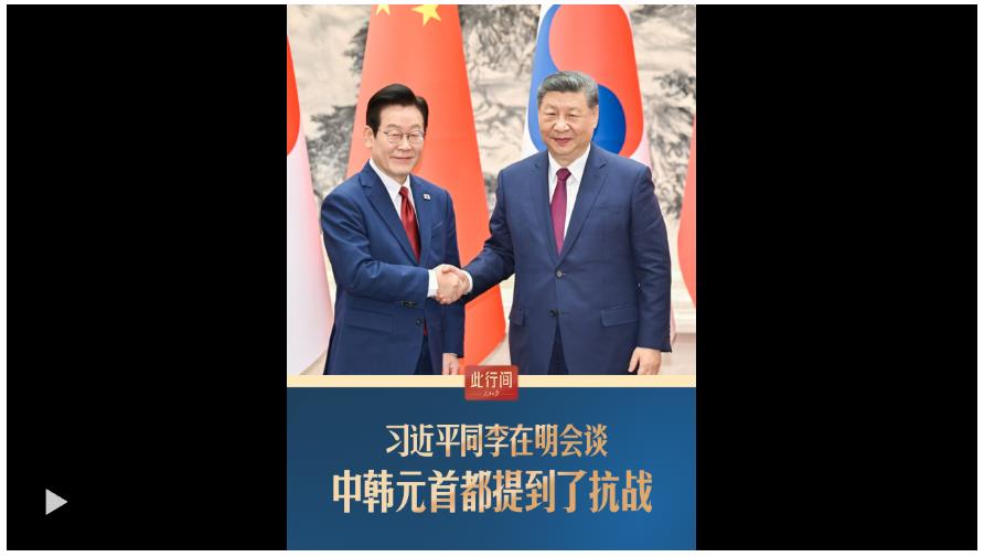 1月5日,国家主席习近平同韩国总统李在明举行会谈。习近平指出,中韩应当坚定站在历史正确一边,作出正确战略选择。会谈中,两国元首都提到了80多年前的抗战。