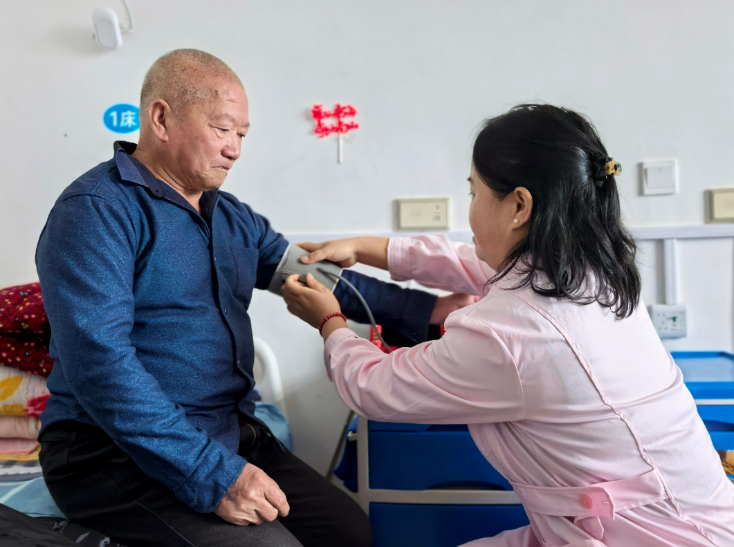 咋看病?县财政全额补贴特困人员医保。去问诊,养老院有人陪。县里还实施了“行走的医院”健康180项目,定期有医生上门巡诊。